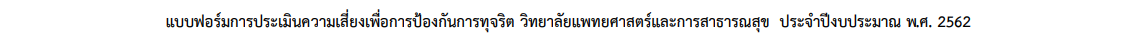 ประเด็นความเสี่ยง | การควบคุมที่มีอยู่ | การประเมินความเสี่ยง | แนวทางการจัดการ/มาตรการ ป้องกันการทุจริต |