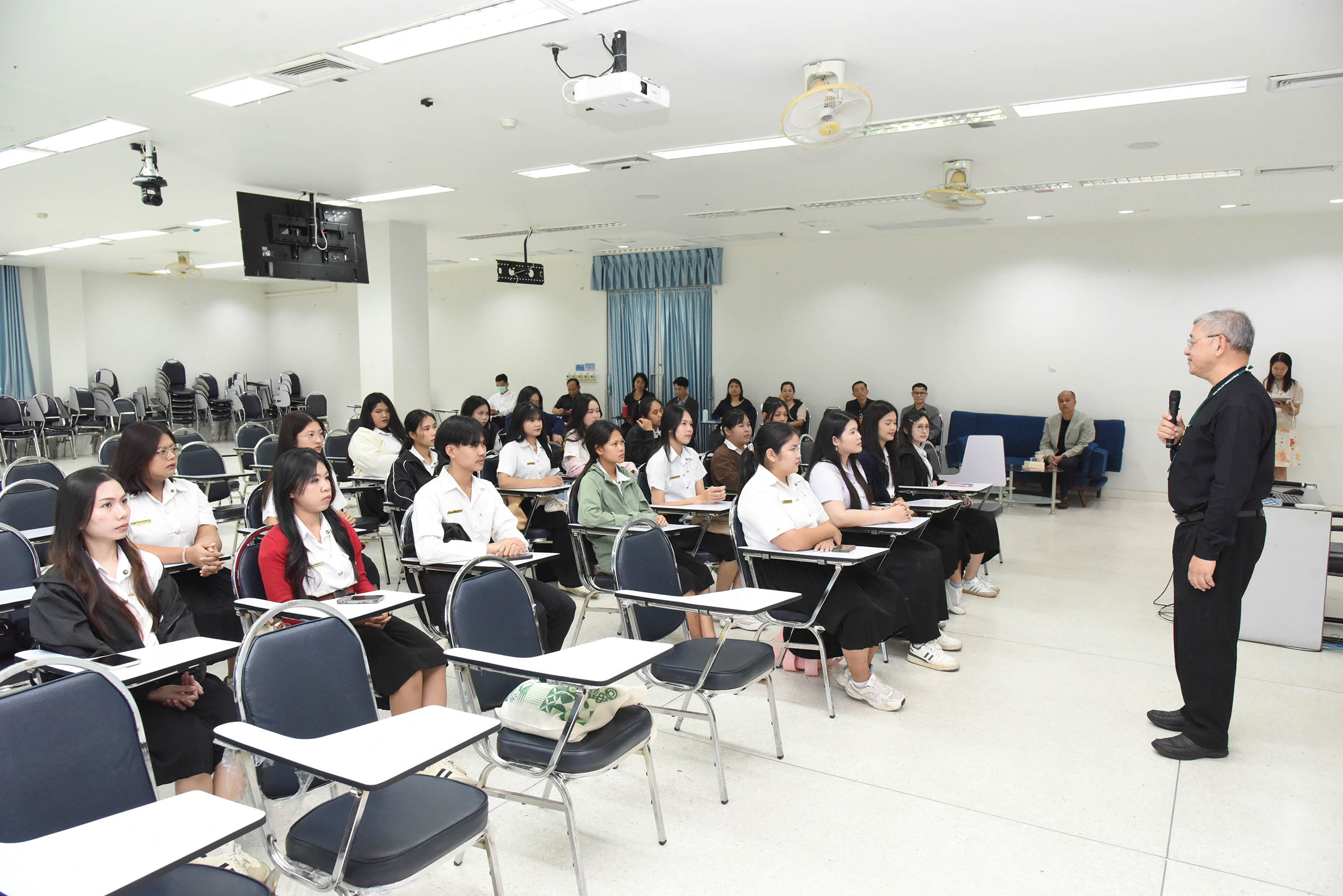 | ภาพกิจกรรมโครงการปัจฉิมนิเทศนักศึกษาหลักสูตรวิทยาศาสตรบัณฑิต (สาขาอนามัยสิ่งเเวดล้อม) ประจำปีการศึกษา 2568 ได้รับเกรียติจาก ศ.นพ.สงวนสิน รัตนเลิศ คณบดีวิทยาลัยแพทยศาสตร์และการสาธารณสุข เป็นประธานเปิดงานในครั้งนี้ โดยมี อาจารย์ชวพจน์ ศุภสาร อาจารย์ประจำสาขาการตลาด คณะบริหารศาสตร์ มหาวิทยาลัยอุบลราชธานี เป็นวิทยากร ถ่ายทอดประสบการณ์การทำงานให้กับนักศึกษาหลักสูตรวิทยาศาสตรบัณฑิต (สาขาอนามัยสิ่งเเวดล้อม) ชั้นปีที่ 4 วันพุธที่ 11 มีนาคม พ.ศ. 2569 ณ ห้องประชุม cmp 122 วิทยาลัยแพทยศาสตร์และการสาธารณสุข มหาวิทยาลัยอุบลราชธานี สามารถดาวน์โหลดภาพทั้งหมดได้ที่ https://drive.google.com/drive/folders/1yjZ1G-6FKOyGkS0tvFS8-04b2fZ56CcN?usp=sharing |