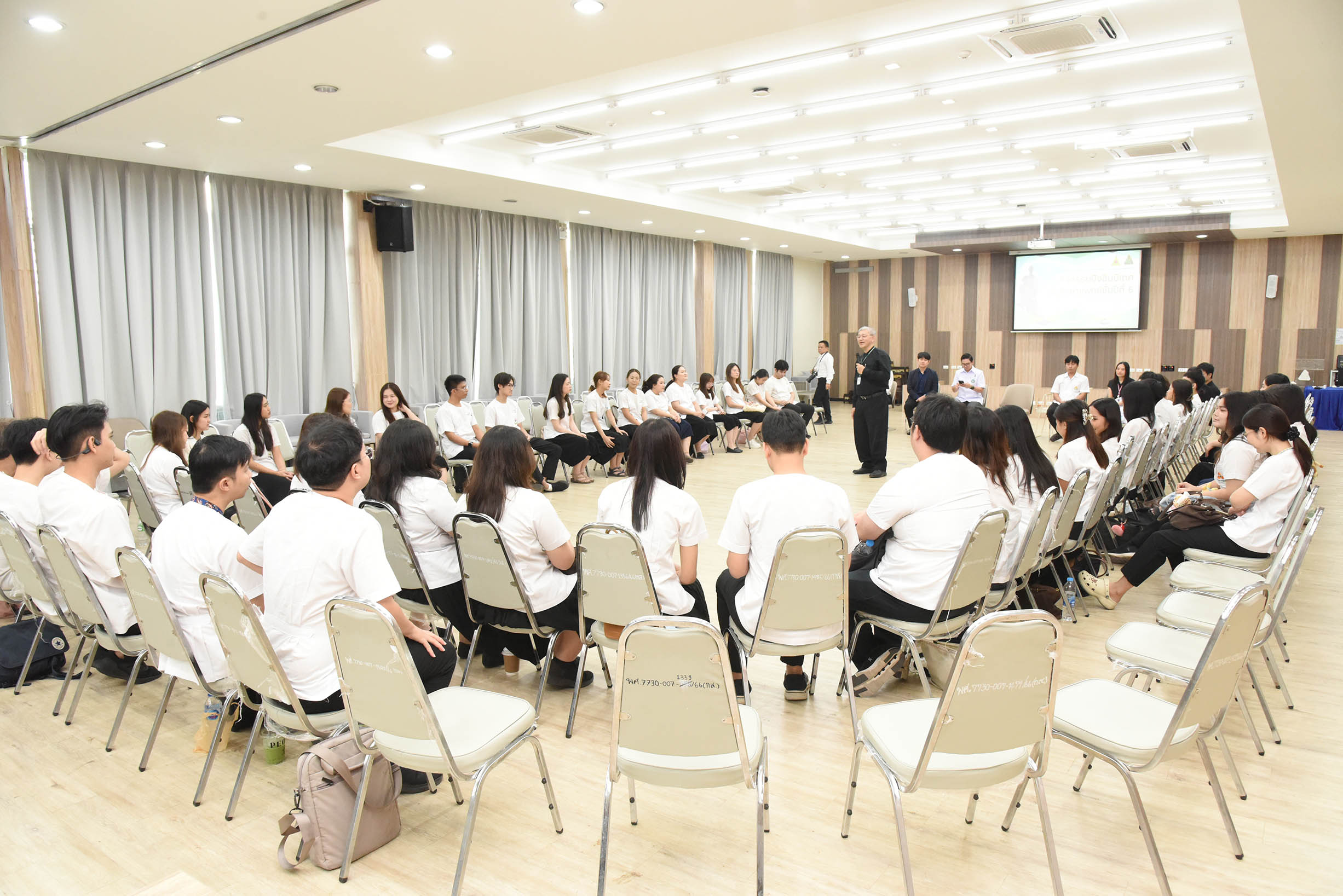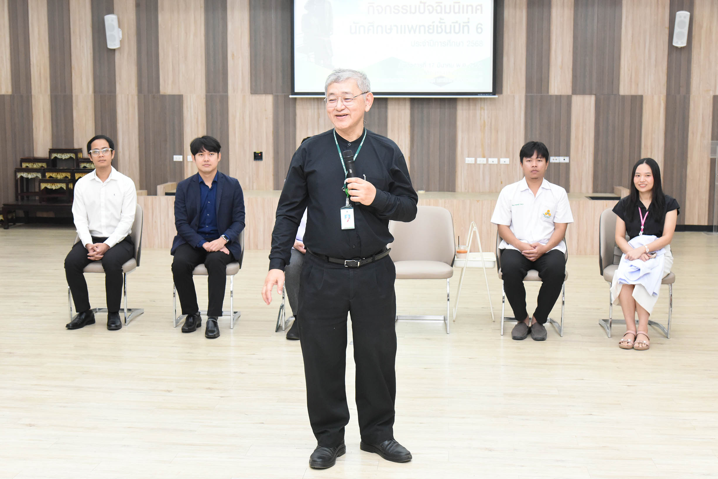 | ภาพกิจกรรมปัจฉิมนิเทศนักศึกษาแพทย์ชั้นปีที่ 6 ประจำปีการศึกษา 2568 โดย ศ.นพ.สงวนสิน รัตนเลิศ คณบดีวิทยาลัยแพทยศาสตร์และการสาธารณสุข เป็นประธานเปิดงานและกล่าวให้โอวาท และศิษย์เก่าได้มาถ่ายทอดประสบการณ์ ก้าวแรกสู่วิชาชีพ ชีวิตการทำงานและการเงิน ให้กับนักศึกษาแพทย์ชั้นปีที่ 6 จากศูนย์แพทยศาสตรศึกษาชั้นคลินิกโรงพยาบาลสรรพสิทธิประสงค์และศูนย์แพทยศาสตรศึกษาชั้นคลินิกโรงพยาบาลศรีสะเกษ วันพุธที่ 17 มีนาคม พ.ศ.2569 เวลา 9.00 - 15.00 น.ณ ห้องประชุม NTC 410-411 อาคารโภชนาการ วิทยาลัยแพทยศาสตร์และการสาธารณสุข มหาวิทยาลัยอุบลราชธานี สามารถดาวน์โหลดภาพทั้งหมดได้ที่ https://drive.google.com/drive/folders/1d7hAxaDeDru5XiorSzbp59hu_HjDGB8M?usp=sharing |