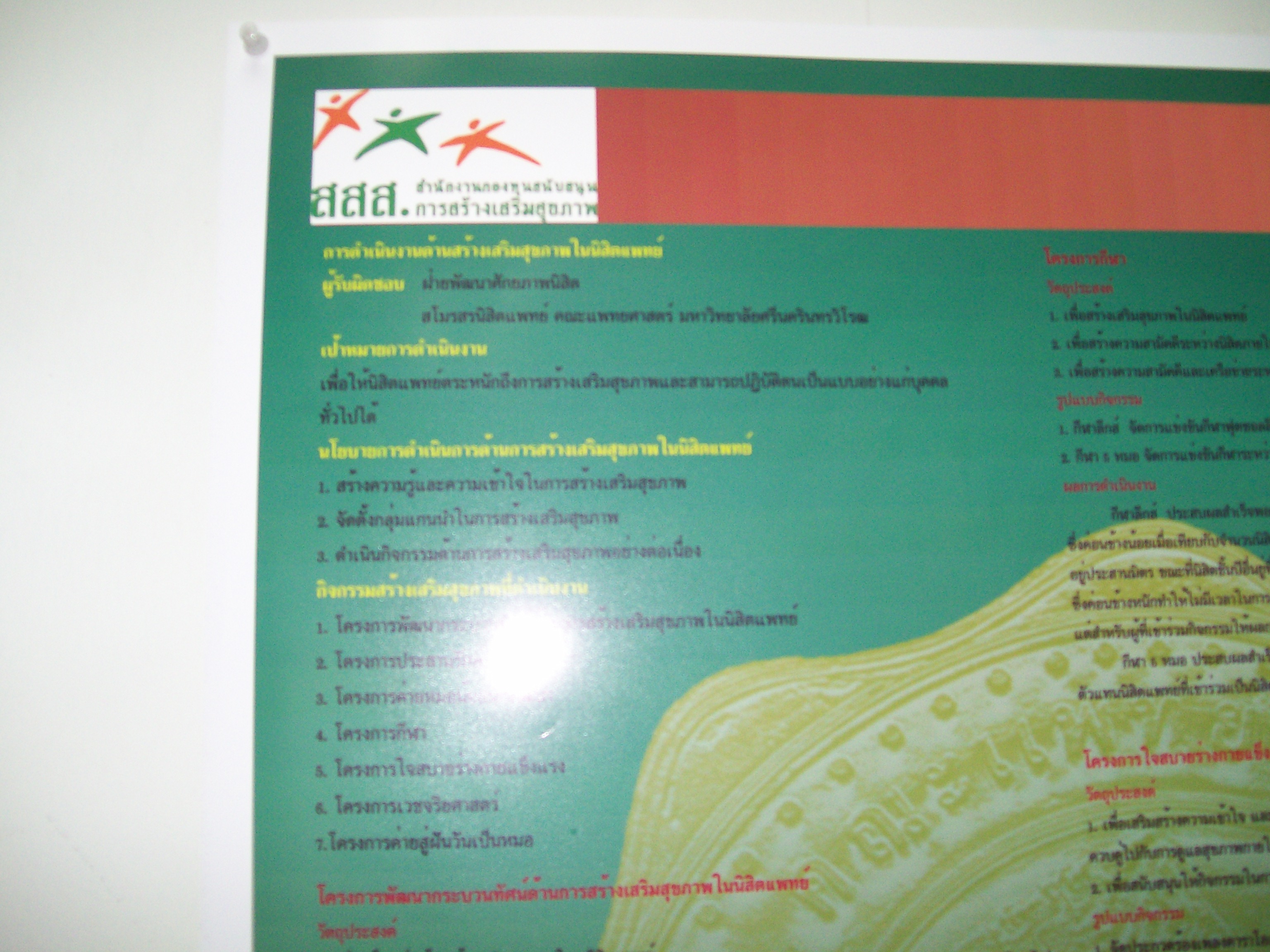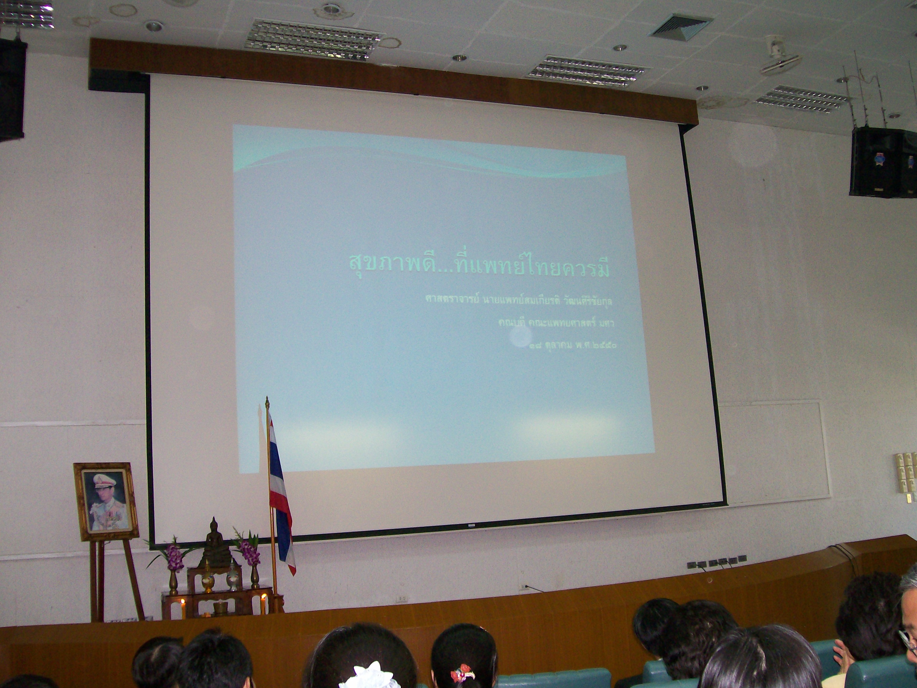 อาจารย์ ดร.ณัฏฐวุฒิ แก้วพิทูลย์ รองคณบดีฝ่ายวิจัย และอาจารย์แพทย์หญิงสรญาแก้วพิทูลย์ ผู้ช่วยคณบดีฝ่ายแพทยศาสตรศึกษาได้เข้าร่วมประชุมสัมมนาการร่างหลักสูตรการเรียนการสอนการบริโภคยาสูบในหลักสูตรแพทยศาสตรบัณฑิต คณะแพทยศาสตร์ มหาวิทยาลัยศรีนคริทร์วิโรฒ ร่วมกับคณะผู้บริหารคณะแพทย์ มศว. และรองคณบดีฝ่ายกิจการนักศึกษาจากคณะแพทย์ มหาวิทยาลัยต่างๆ ทั้ง 17 สถาบัน ในวันที่ 18 ตุลาาคม 2550 ณ อาคารศูนย์การแพทย์ คณะแพทยศาสตร์ มหาวิทยาลัยศรีนคริทร์วิโรฒ |