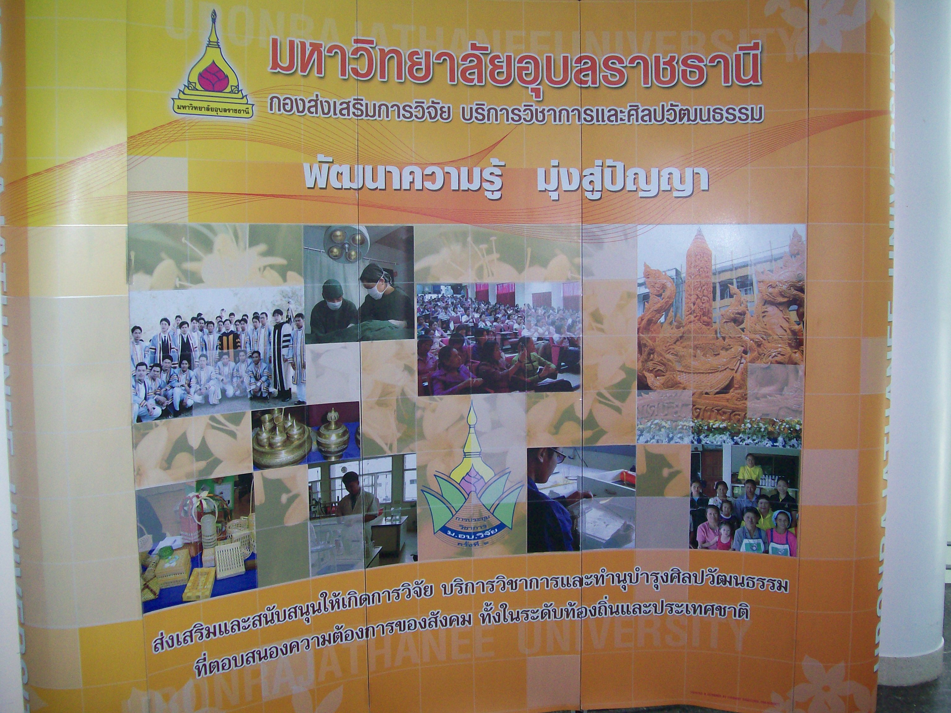 กองส่งเสริมการวิจัย มหาวิทยาลัยอุบลราชธานี จัดงานพัฒนาทักษะนักวิจัยและสังสรรค์นักวิจัยครั้งที่ 3 ในวันพฤหัสบดีที่ 15 พฤศจิกายน 2550 เวลา 08.30-13.00 น. ณ ห้องประชุมพิบูลมังสาหาร อาคารเครือข่ายวิจัยและเทคโนโลยี สำนักงานอธิการบดี มหาวิทยาลัยอุบลราชธานี |