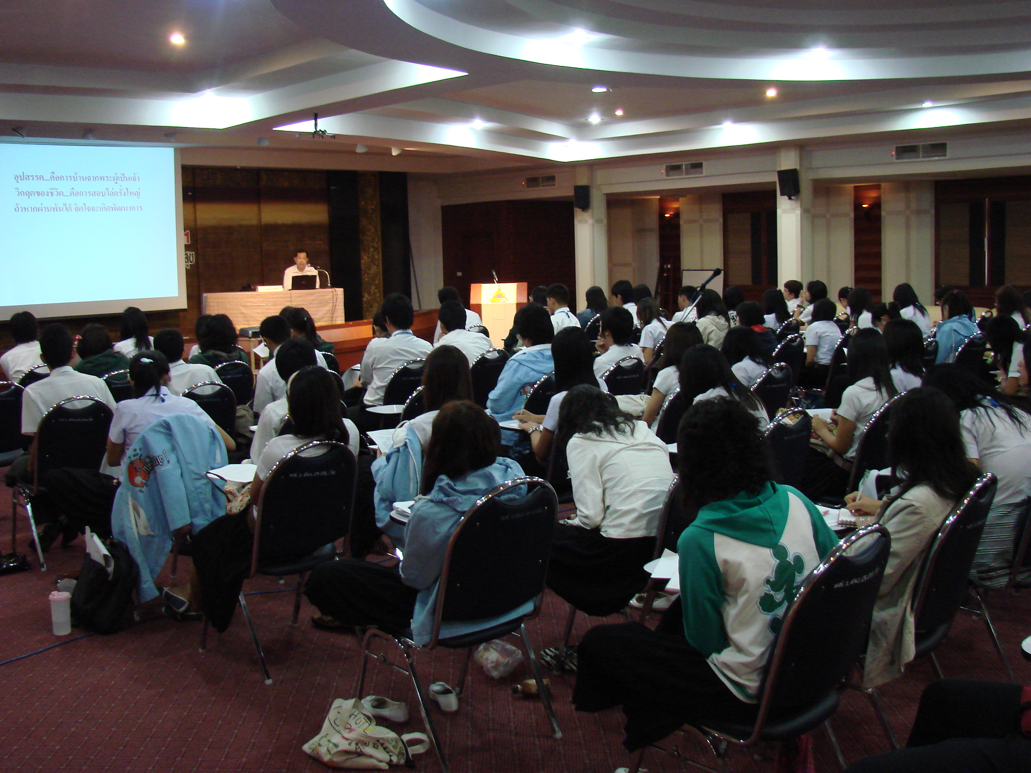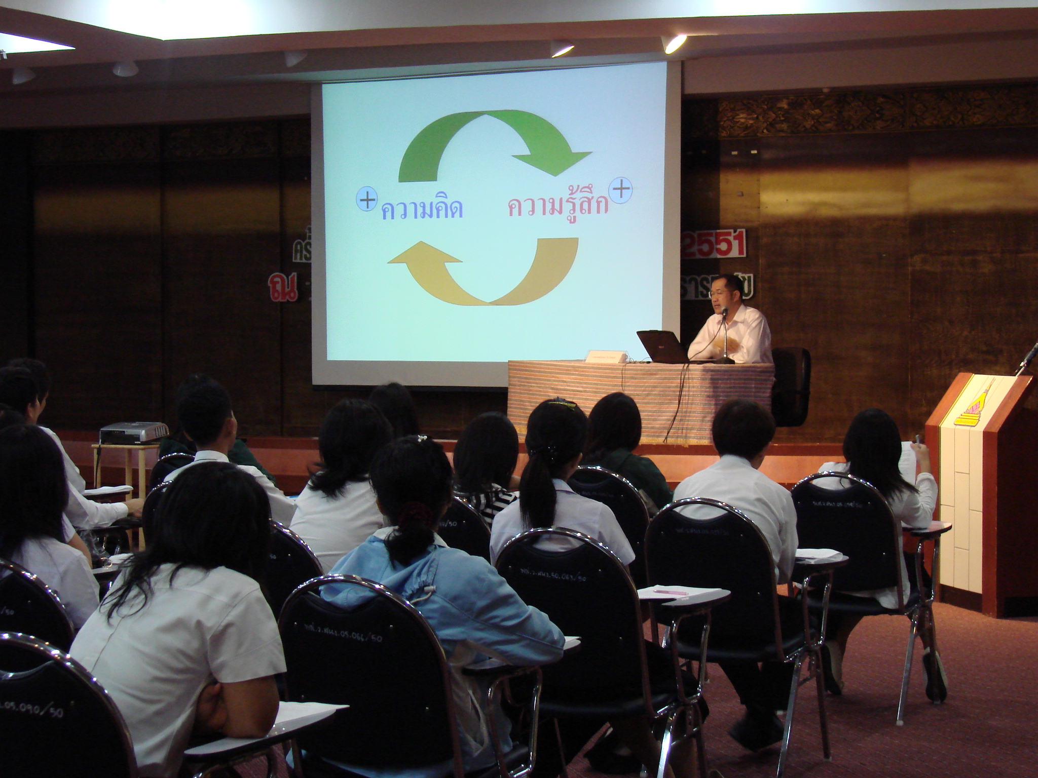 งานปฐมนิเทศและร่วมฟังการบรรยาย โดยนายแพทย์สุกมล วิภาวีพลกุล หัวหน้าหน่วยจิตเวชโรงพยาบาลพญาไท 2 1. ความคิดเชิงบวก (Positive thinking) 2. ความฉลาดทางอารมณ์ (Emotional Quotient) 3. การสื่อสาร (Communication) 4. การใช้ชีวิตอย่างมีความสุข (Life Happiness)