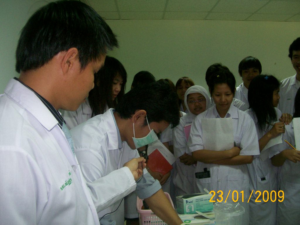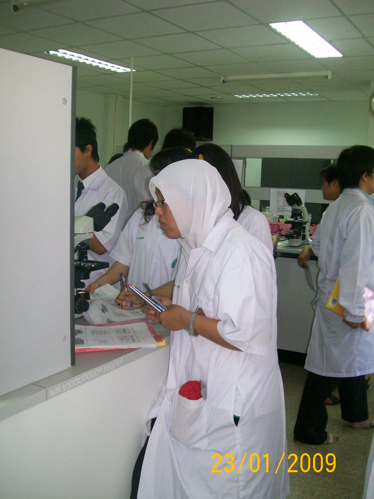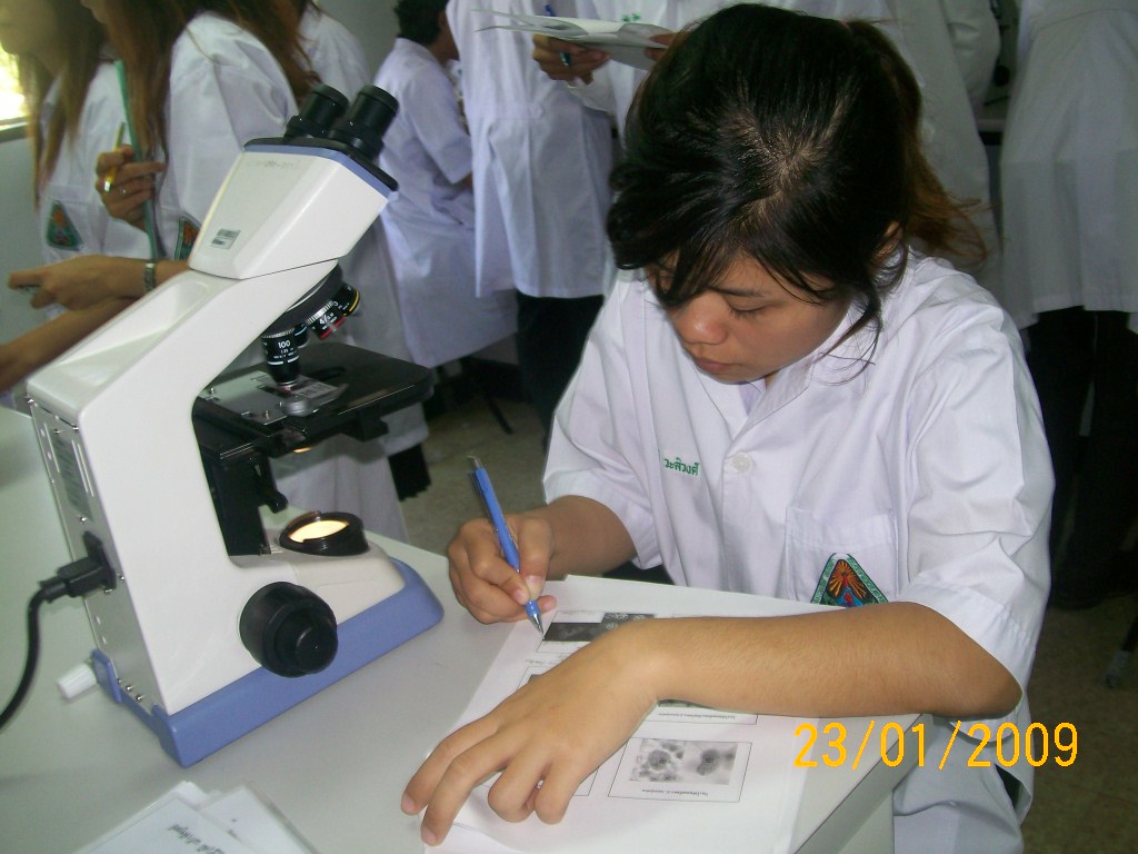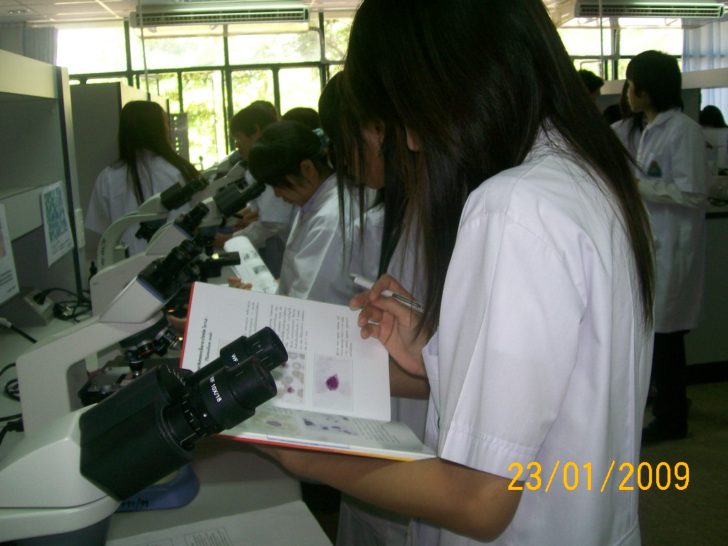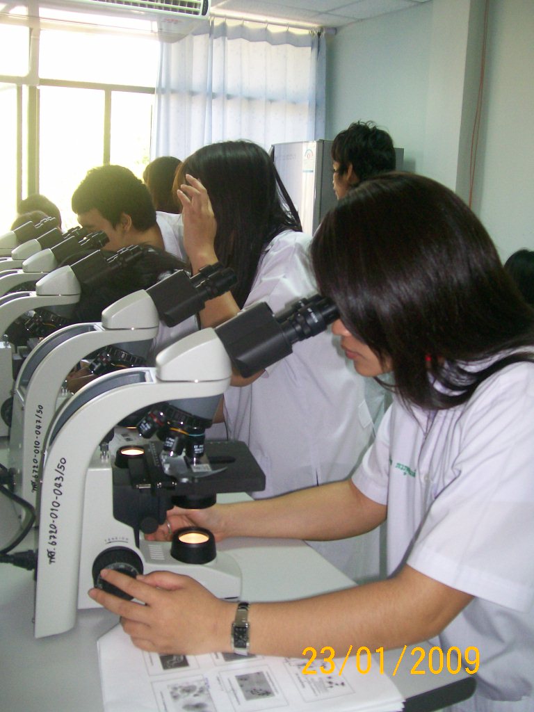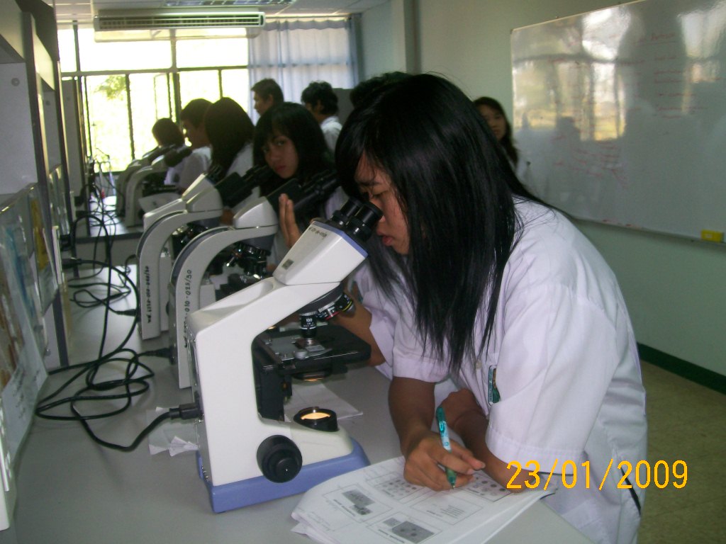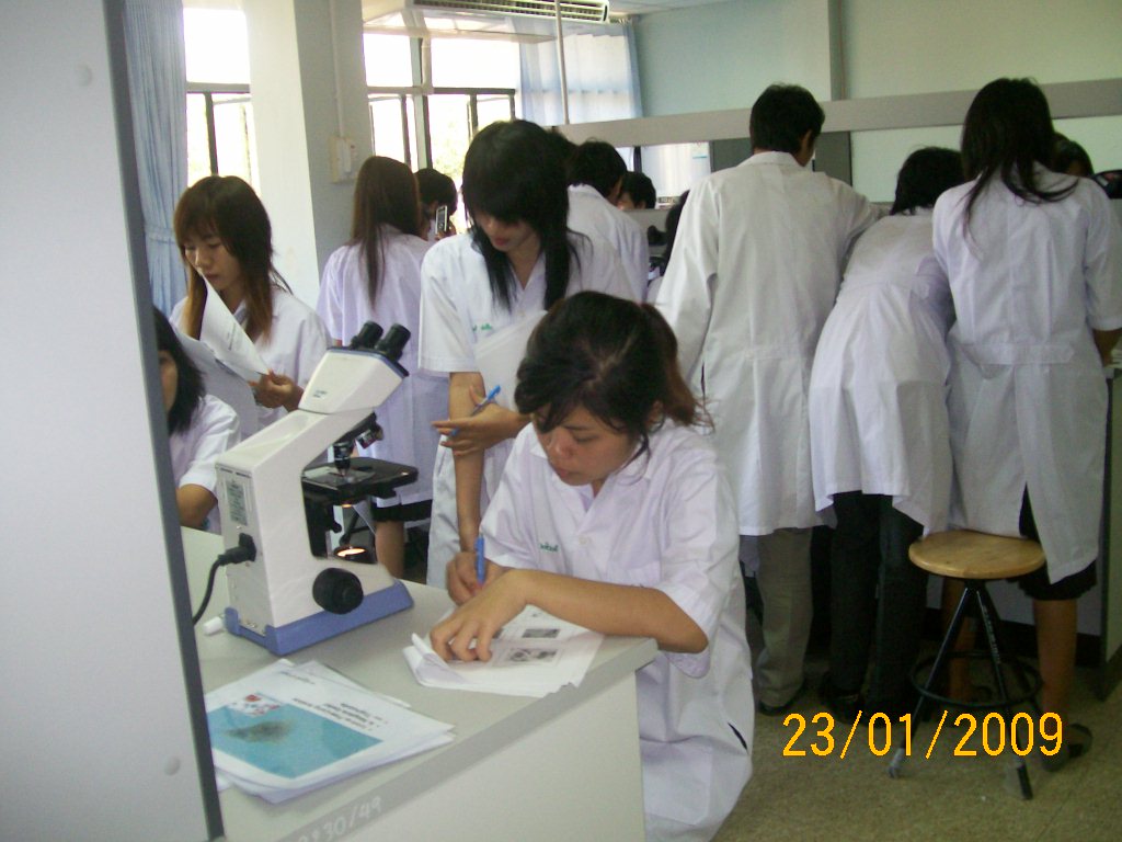 นักศึกษาสาธารณสุขศาสตร์ ชั้นปีที่ 2 ฝึกปฏิบัติการตรวจหาเชื้อโปโตซัวที่สำคัญทางการแพทย์ โดยการปฏิบัติจริง ในวันที่ 23 มกราคม 2552 09.00-16.00 น. ณ ห้องฝึกปฏิบัติการจุลชีววิทยาและปรสิตวิทยา วิทยาลัยแพทยศาสตร์ฯ ใช้ตัวอย่างจากผู้ป่วยจริง เพื่อมุ่งเน้นให้นักศึกษามีความรู้ ความชำนาญในการตรวจวินิฉัยโรคได้ |