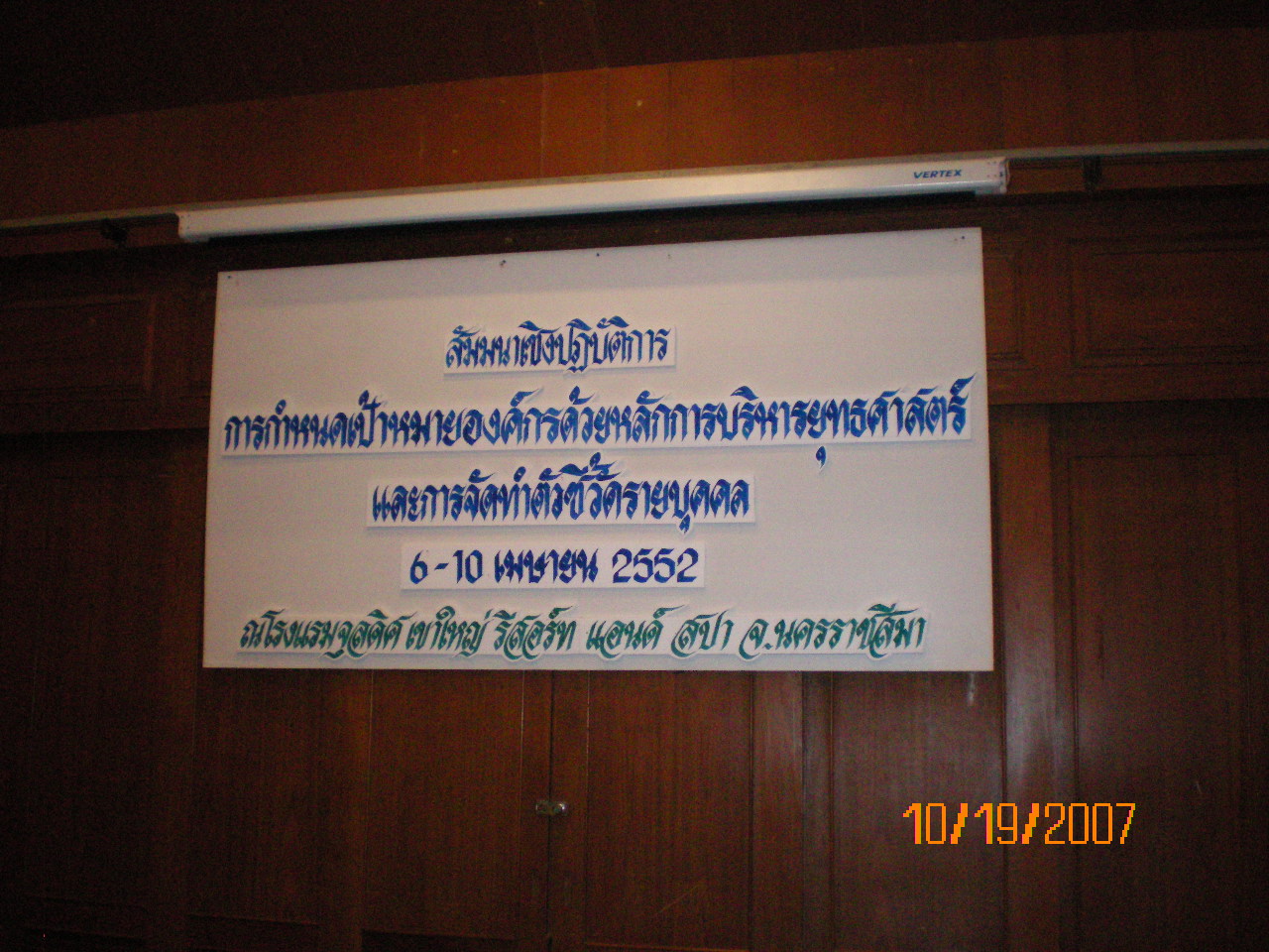 เมื่อวันที่ 6-10 เมษายน 2552 ที่ผ่านมา งานแผน สำนักงานคณบดี วิทยาลัยแพทยศาสตร์ฯ ได้จัดอบรมเชิงปฏิบัติการเรื่องการทำแผนยุทธศาสตร์และการกระจายตัวบ่งชี้รายบุคคล วิทยาลัยแพทยศาสตร์และการสาธารณสุข ณ เขาใหญ่จุลดิศ รีสอร์ท อ.ปากช่อง จ.นครราชสีมา |