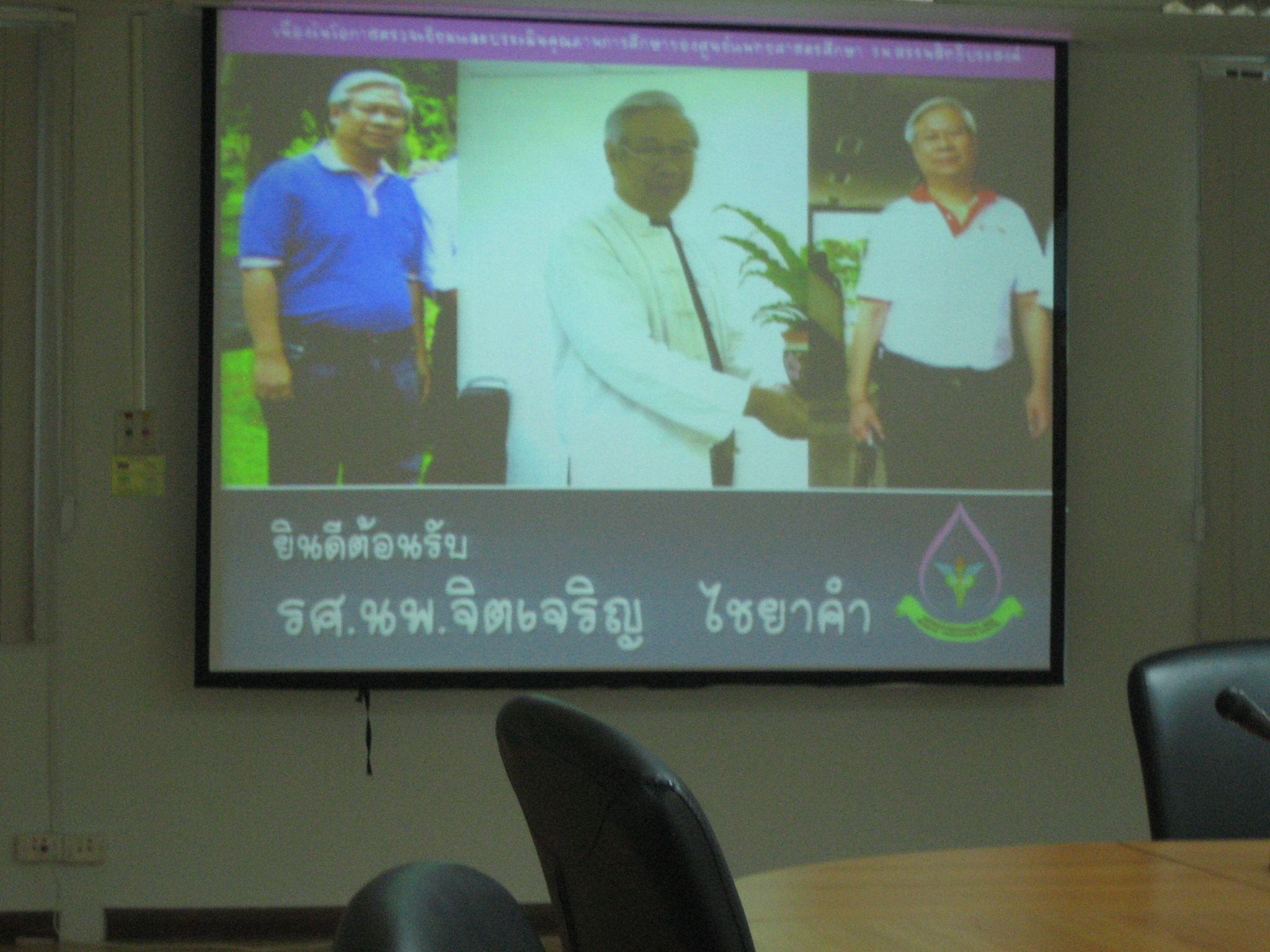 | ประธานกรรมการตรวจประเมินคุณภาพ วิทยาลัยฯ รศ.นพ.จิตเจริญ ไชยาคำ และ กรรมการตรวจประเมิน รศ.ดร.วิภาวี เสาหิน พร้อมด้วย ผช.คณบดีหลักสูตรแพทยศาสตรบัณฑิต พญ.ปาริชาติ วงศ์เสนา และคณะ เข้าเยี่ยมตรวจคุณภาพการศึกษา ศูนย์แพทยศาสตรศึกษา รพ.สรรพิสิทธิประสงค์ เมื่อวันที่ 23 มิ.ย.2553 ซึ่ง ทาง