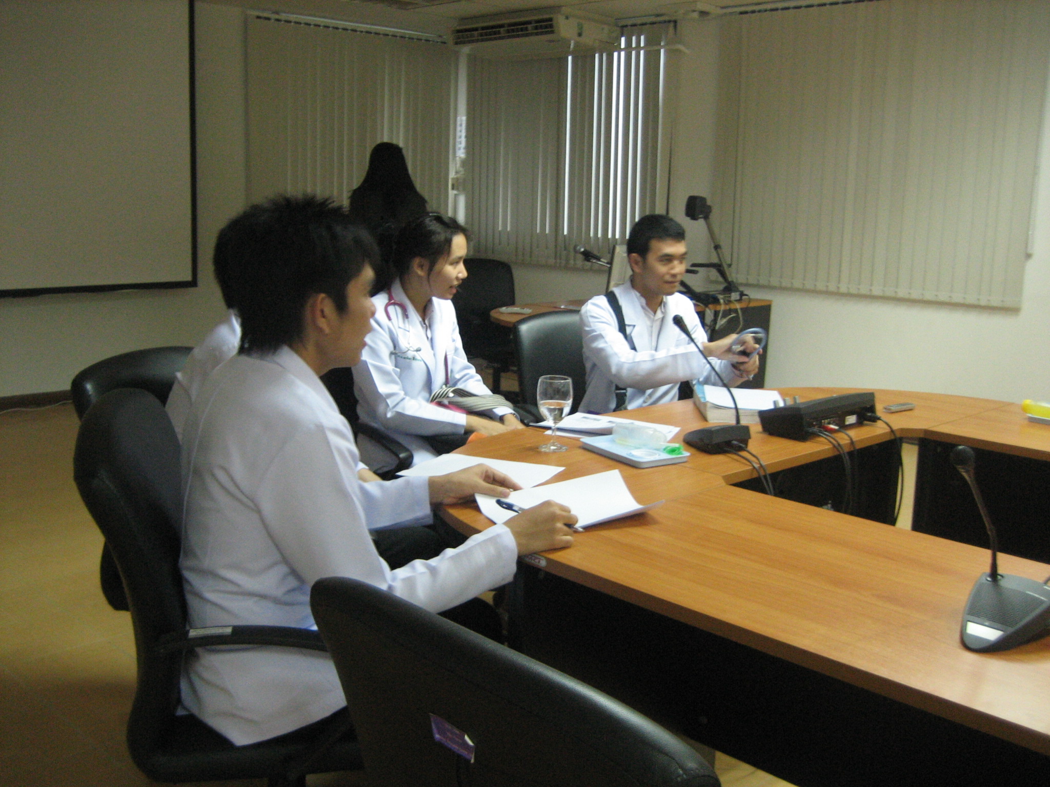 นพ.มนัส กนกศิลป์ (ผุ้อำนวยการโรงพยาบาบสรรพสิทธิประสงค์) , นพ.หรรษา แต้ศิระ (ผู้อำนวยการศูนย์แพทยศาสตรศึกษา) พร้อมคณะ ให้การต้อนรับ และรายงานผลการดำเนินงานของศูนย์แพทยศาสตรศึกษา เป็นไปด้วยดี |