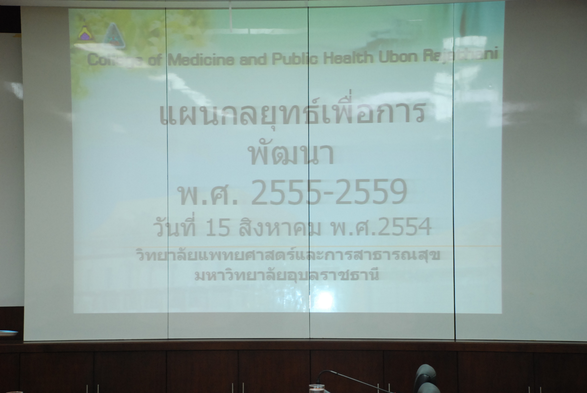 หัวข้อกิจกรรมเลขที่ #449 :: สรุปภาพรวมยุทธศาสตร์และการถ่ายทอดกลยุทธ์ พ.ศ.2555-2559 สู่หน่วยงานและโรงพยาบาลหลัก วิทยาลัยแพทยศาสตร์และการสาธารณสุข มหาวิทยาลัยอุบลราชธานี