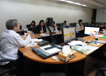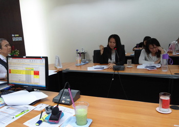 ตำแหน่ง ผู้ช่วยคณบดีงานประกันคุณภาพการศึกษาและสารสนเทศ นำเสนอข้อมูลในที่ประชุม พร้อมด้วยผู้บริหาร คณาจารย์