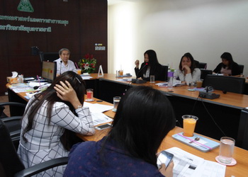 ประธานในที่ประชุมคือ รศ.นพ.ป่วน สุทธิพินิจธรรม ตำแหน่ง คณบดี และ อ.ปัณฑิตา สุขุมาลย์