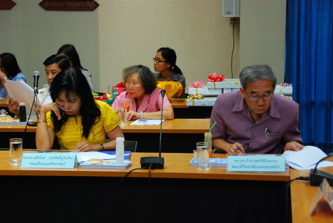 คณะกรรมการตรวจประเมินคุณภาพการศึกษาภายใน ระดับวิทยาลัย ปีการศึกษา 2556 โดยมี ศ.เกียรติคุณ) พล.ต.หญิง พญ.วณิช วรรณพฤกษ์ จากสำนักวิชาแพทยศาสตร์ มหาวิทยาลัยเทคโนโลยีสุรนารี เป็นประธานคณะกรรมการตรวจประเมินคุณภาพท่านที่1 และรศ.ดร.เดชพล ปรีชากุล จากคณะเภสัชศาสตร์ มหาวิทยาลัยขอนแก่น เป็นประธานคณะกรมการตรวจประเมินท่านที่ 2 พร้อมคณะกรรมการตรวจประเมินจากทางมหาวิทยาลัยอุบลราชธานี ได้เข้าตรวจประเมินคุณภาพการศึกษา ระดับคณะ (กลุ่มวิทย์-สุขภาพ) ในวันที่ 15-17กรกฎาคม 2557 ณ สำนักงานอธิการบดี มหาวิทยาลัยอุบลราชธานี |