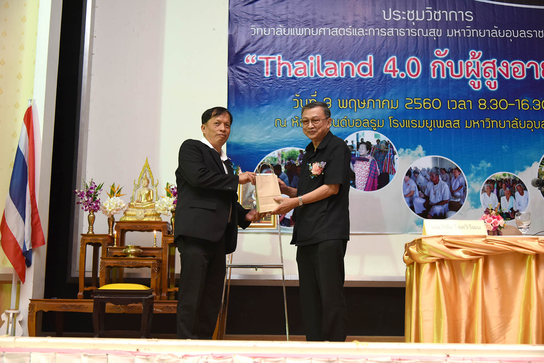 ภาพบรรยากาศการประชุมวิชาการ ประจำปี วิทยาลัยแพทยศาสตร์และการสาธารณสุข ครั้งที่ 6 Thailand 4.0 กับผู้สูงอายุไทย ปาฐกถาพิเศษ โดย นายแพทย์วิชัย โชควิวัฒน