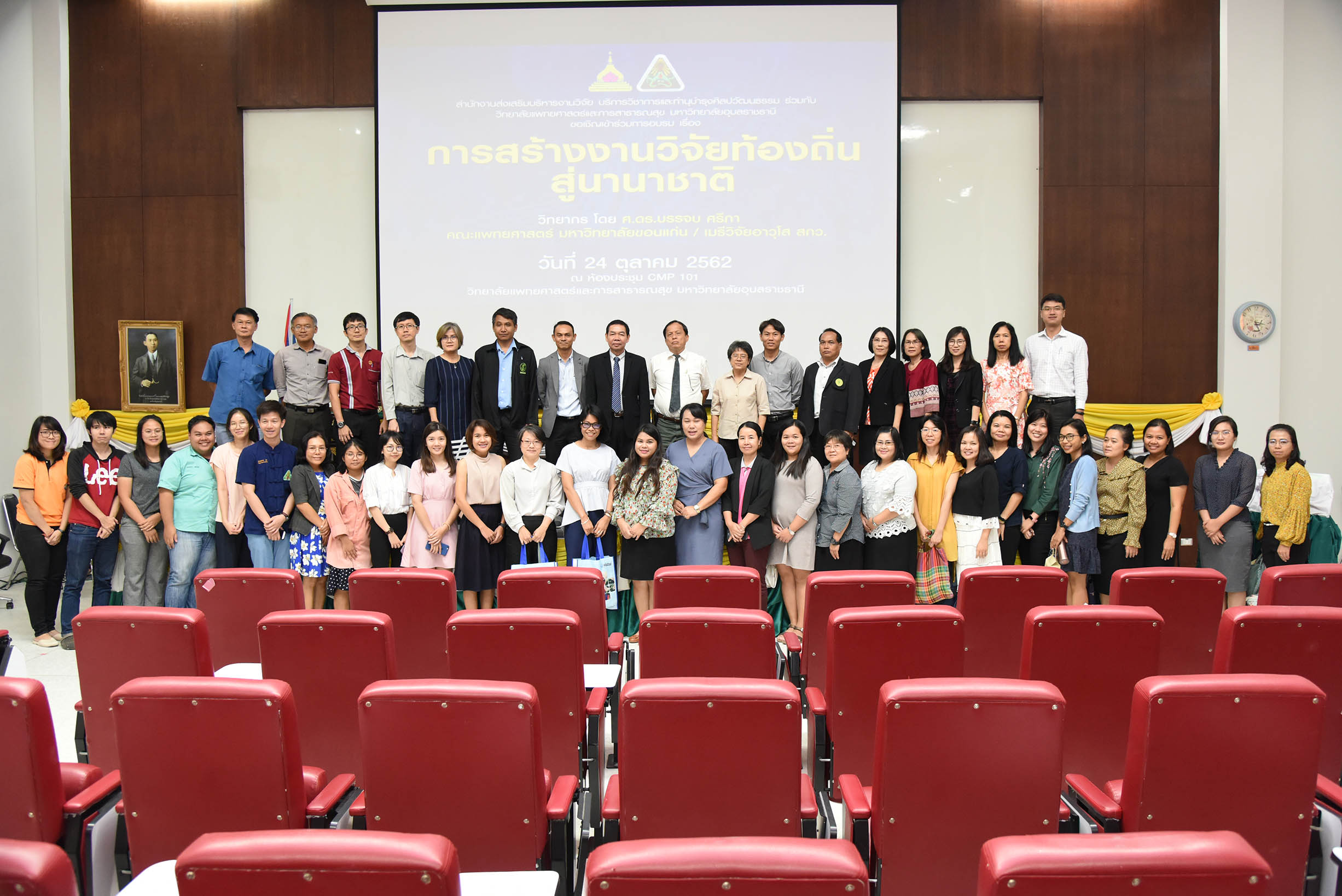 สำนักงานส่งเสริมบริหารงานวิจัย บริการวิชาการและทำนุบำรุงศิลปวัฒนธรรม ร่วมกับ วิทยาลัยแพทยศาสตร์และการสาธารณสุข มหาวิทยาลัยอุบลราชธานี จัดการอบรม "การสร้างงานวิจัยท้องถิ่น สู่นานาชาติ" วิทยากรโดย ศ.ดร.บรรจบ ศรีภา คณะแพทยศาสตร์ มหาวิทยาลัยขอนแก่น / เมธีวิจัยอาวุโส สกว. ณ ห้องประชุม CMP 101 วิทยาลัยแพทยศาสตร์และการสาธารณสุข มหาวิทยาลัยอุบลราชธานี (สามารถดาวน์โหลดภาพทั้งหมดได้ที่คลังภาพ goo.gl/gIFJBd ) |