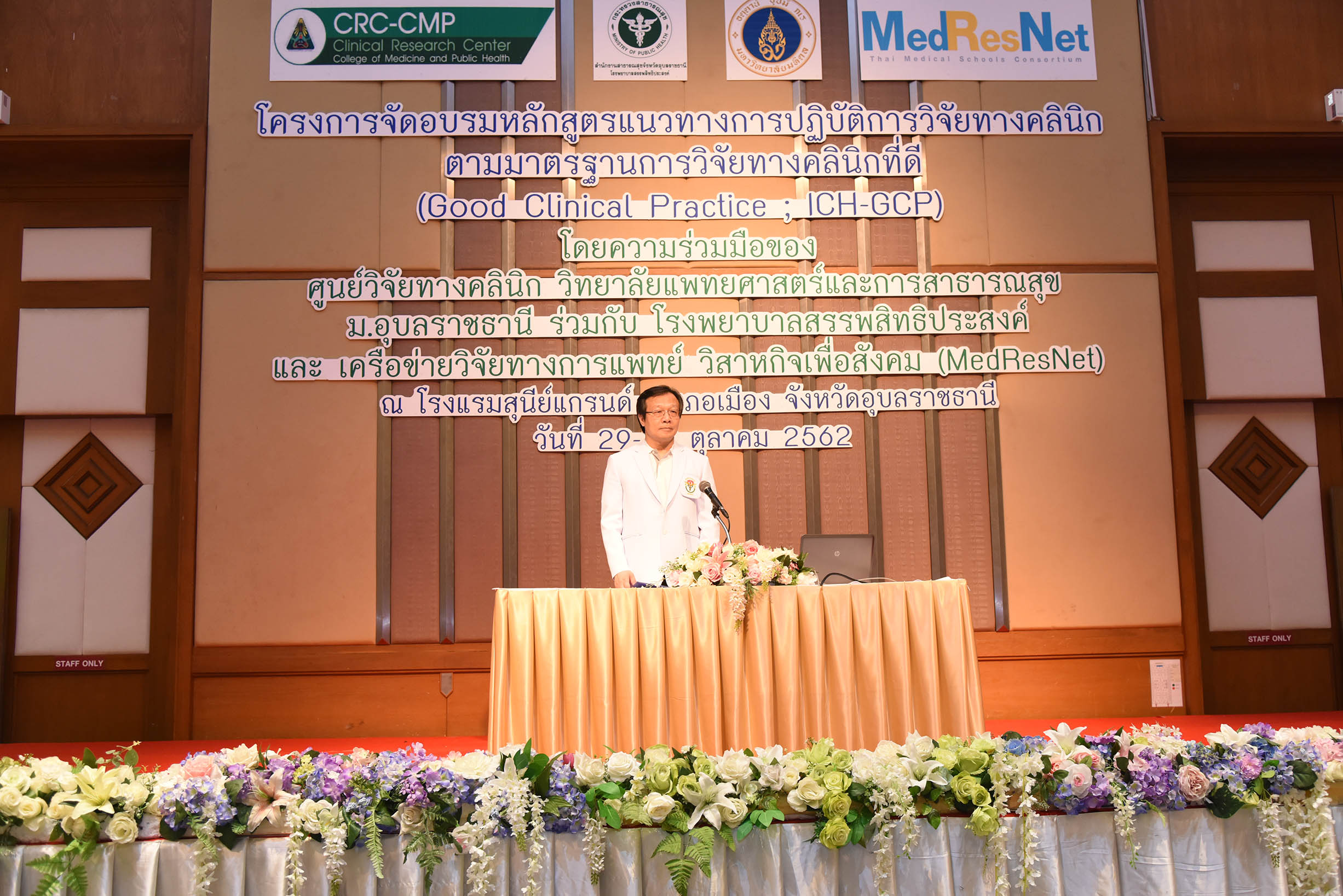 การอบรมหลักสูตรแนวทางการดำเนินการวิจัยทางคลินิกที่ดี โดยความร่วมมือของศูนย์วิจัยทางคลินิก วิทยาลัยแพทยศาสตร์และการสาธารณสุข มหาวิทยาลัอุบลราชธานี ร่วมกับ โรงพยาบาลสรรพสิทธิประสงค์ และ เครือข่ายวิจัยทางการแพทย์ วิสาหกิจเพื่อสังคม (MedResNet) ระหว่างวันที่ 29-30 ตุลาคม 2562 ณ ห้องประชุมทับทิมสยาม 3 โรงแรมสุนีย์ แกรนด์ คอนเวนชั่น จังหวัดอุบลราชธานี (สามารถดาวน์โหลดภาพทั้งหมดได้ที่คลังภาพ goo.gl/gIFJBd ) |