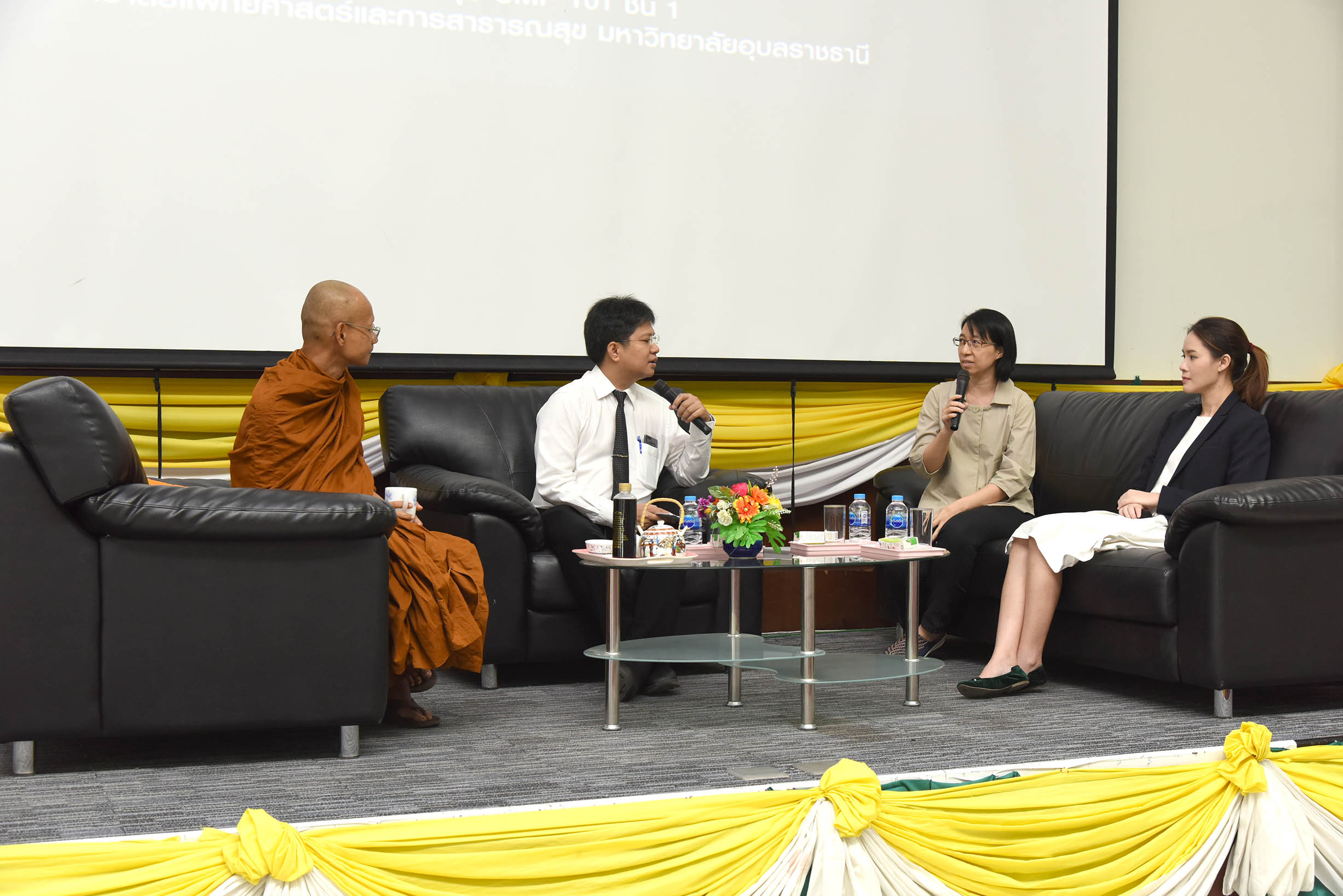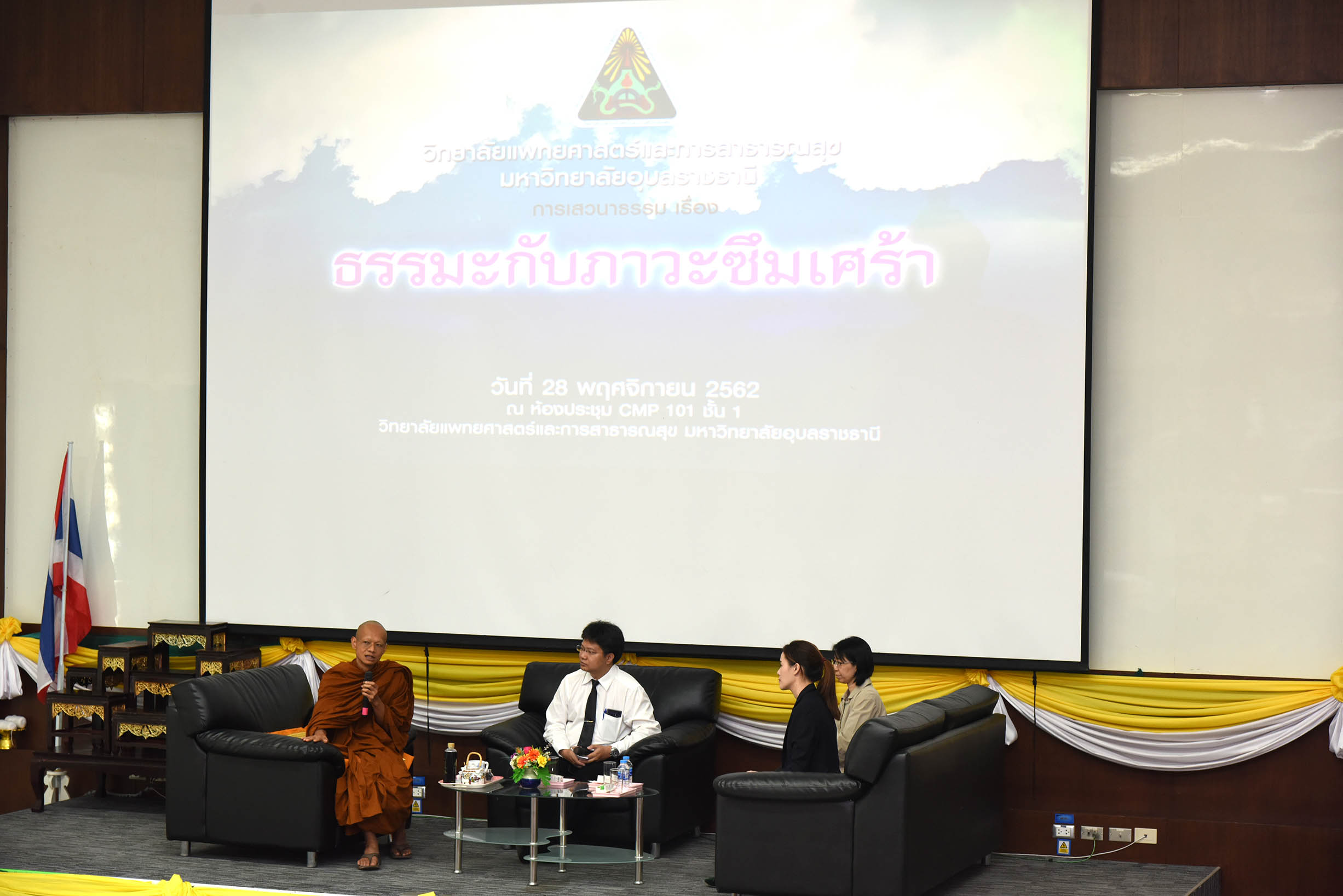 การเสวนาธรรมะ เรื่อง "ธรรมะกับภาวะซึมเศร้า" วันที่ 28 พฤศจิกายน 2562 ณ ห้องประชุม CMP 101 วิทยาลัยแพทยศาสตร์และการสาธารณสุข มหาวิทยาลัยอุบลราชธานี (สามารถดาวน์โหลดภาพทั้งหมดได้ที่คลังภาพ goo.gl/gIFJBd ) |