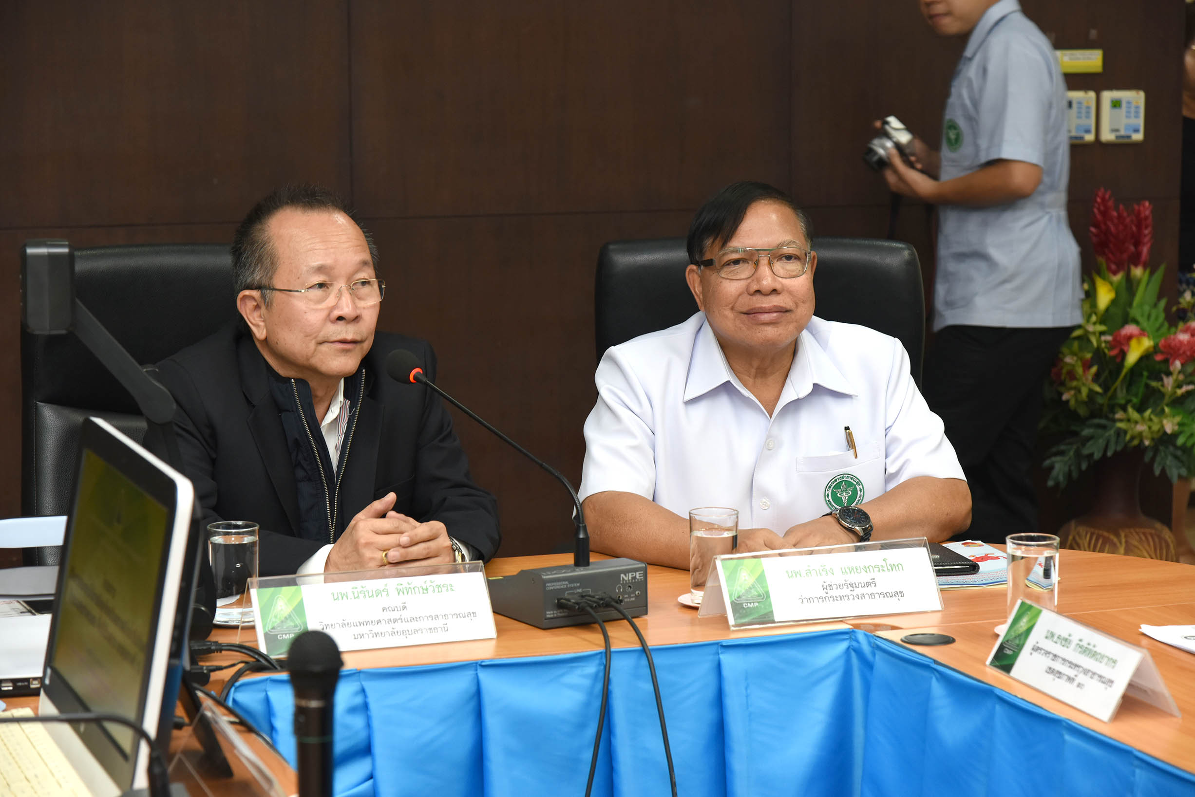 การประชุมหารือโครงการวิจัยการประยุกต์ใช้การรักษาโรคด้วยสารสกัดน้ำมันกัญชากับระบบสุขภาพชุมชน พื้นที่ตัวอย่าง เขตสุขภาพที่ 10 ได้รับเกีรยติจาก นพ.สำเริง แหยงกระโทก ผู้ช่วยรัฐมนตรี กระทรวงสาธารณสุข เป็นประธานการประชุม วันที่ 31 มกราคม 2563 ณ ห้องประชุม CMP 401 วิทยาลัยแพทยศาสตร์และการสาธารณสุข มหาวิทยาลัยอุบลราชธานี (สามารถดาวน์โหลดภาพทั้งหมดได้ที่คลังภาพ goo.gl/gIFJBd ) |