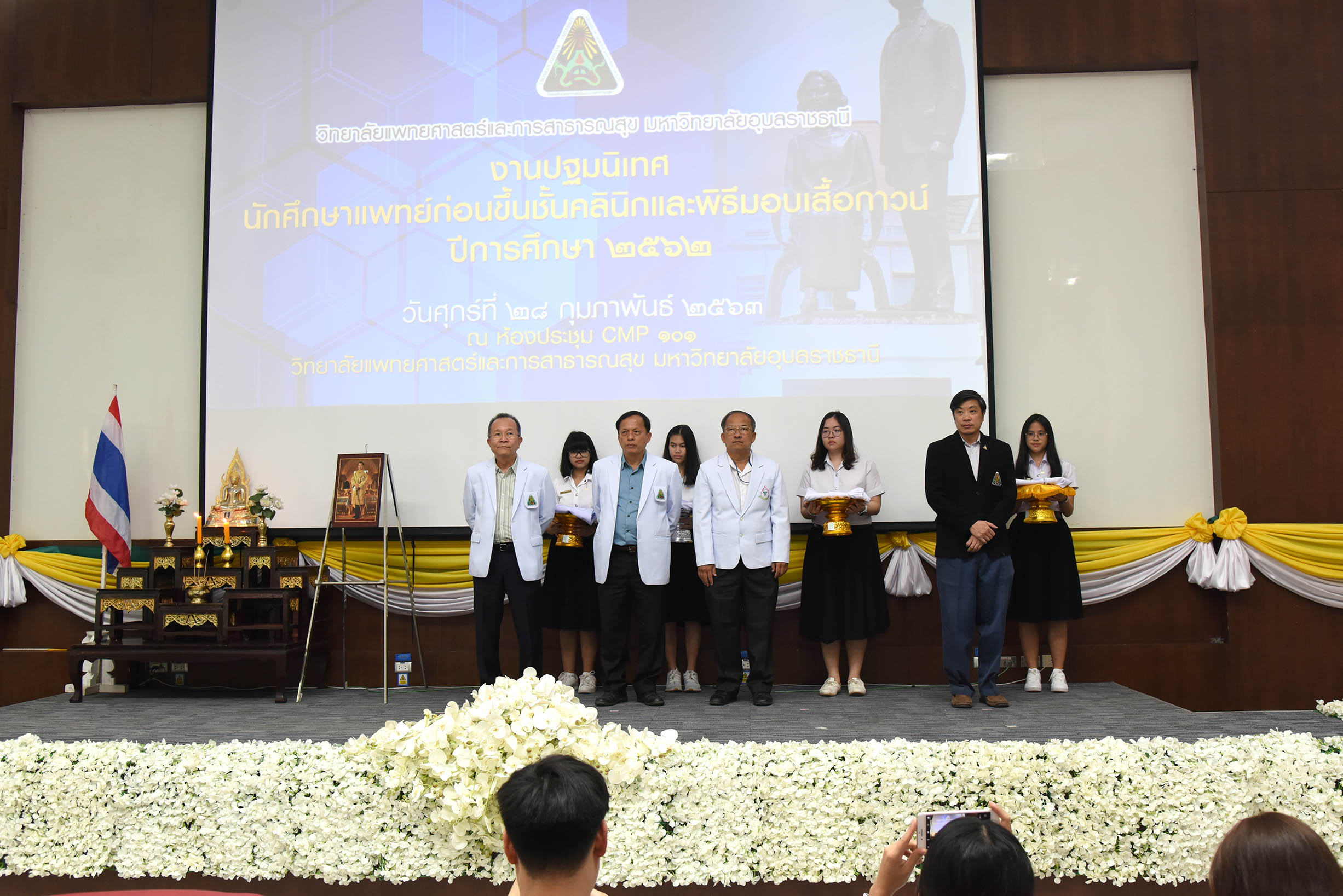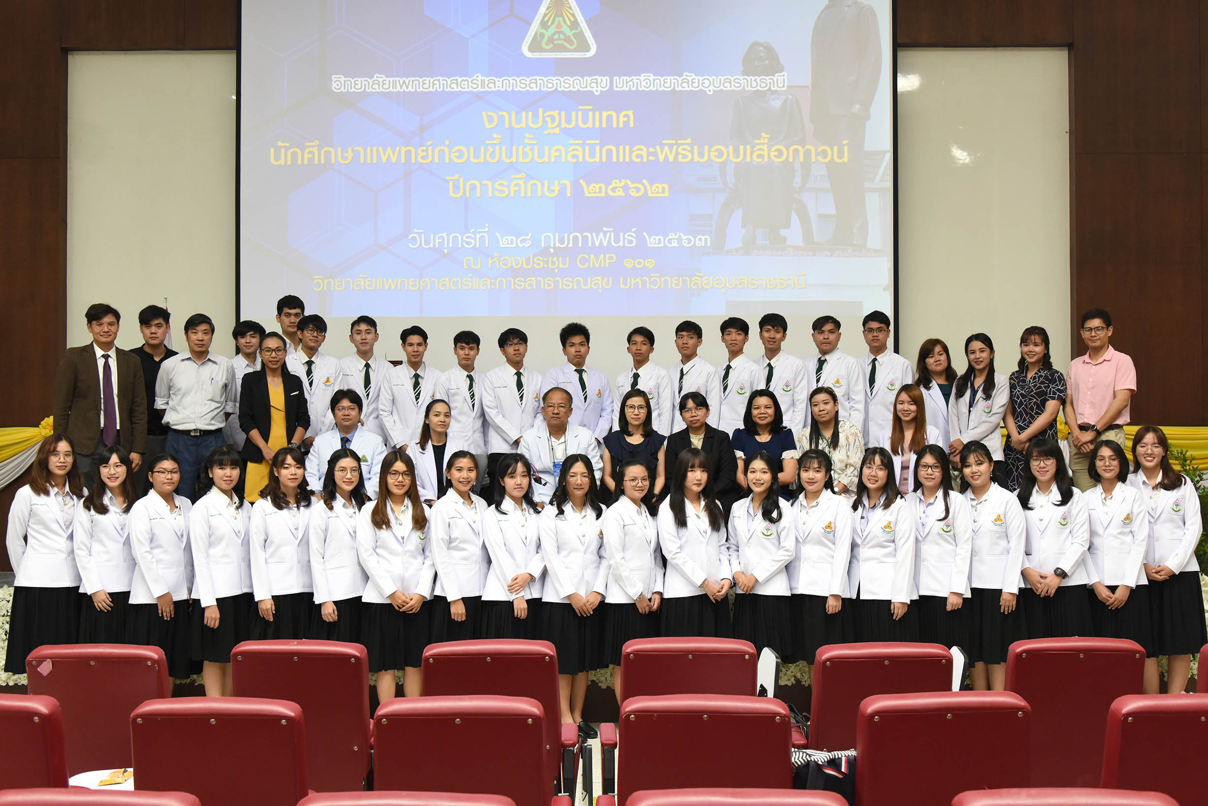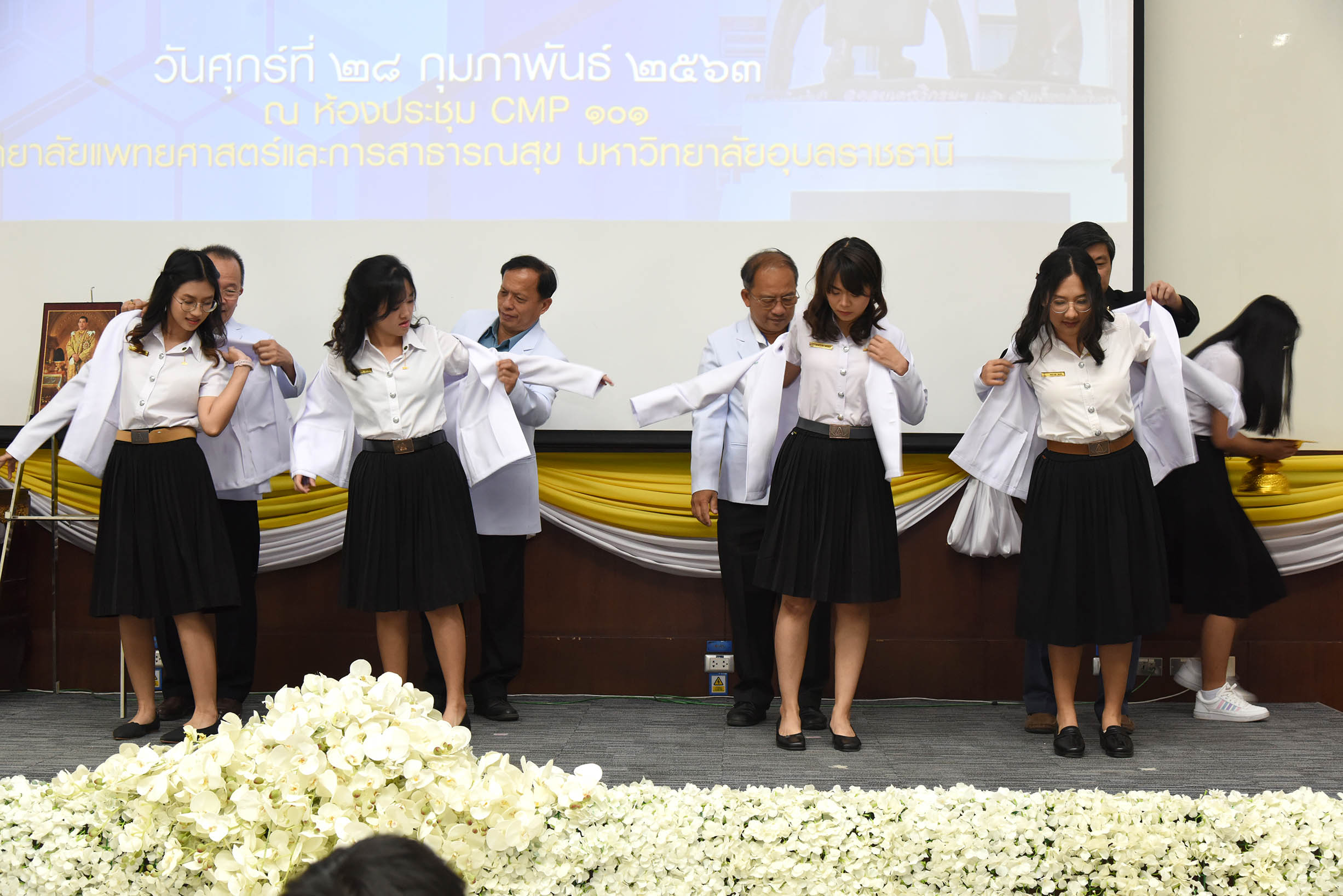 งานปฐมนิเทศก่อนขึ้นชั้นคลินิกและพิธีมอบเสื้อกาวน์สำหรับนักศึกษาแพทย์ ประจำปีการศึกษา 2562 ณ ห้องประชุม CMP 101 วิทยาลัยแพทยศาสตร์และการสาธารณสุข มหาวิทยาลัยอุบลราชธานี (สามารถดาวน์โหลดภาพทั้งหมดได้ที่คลังภาพ goo.gl/gIFJBd ) |