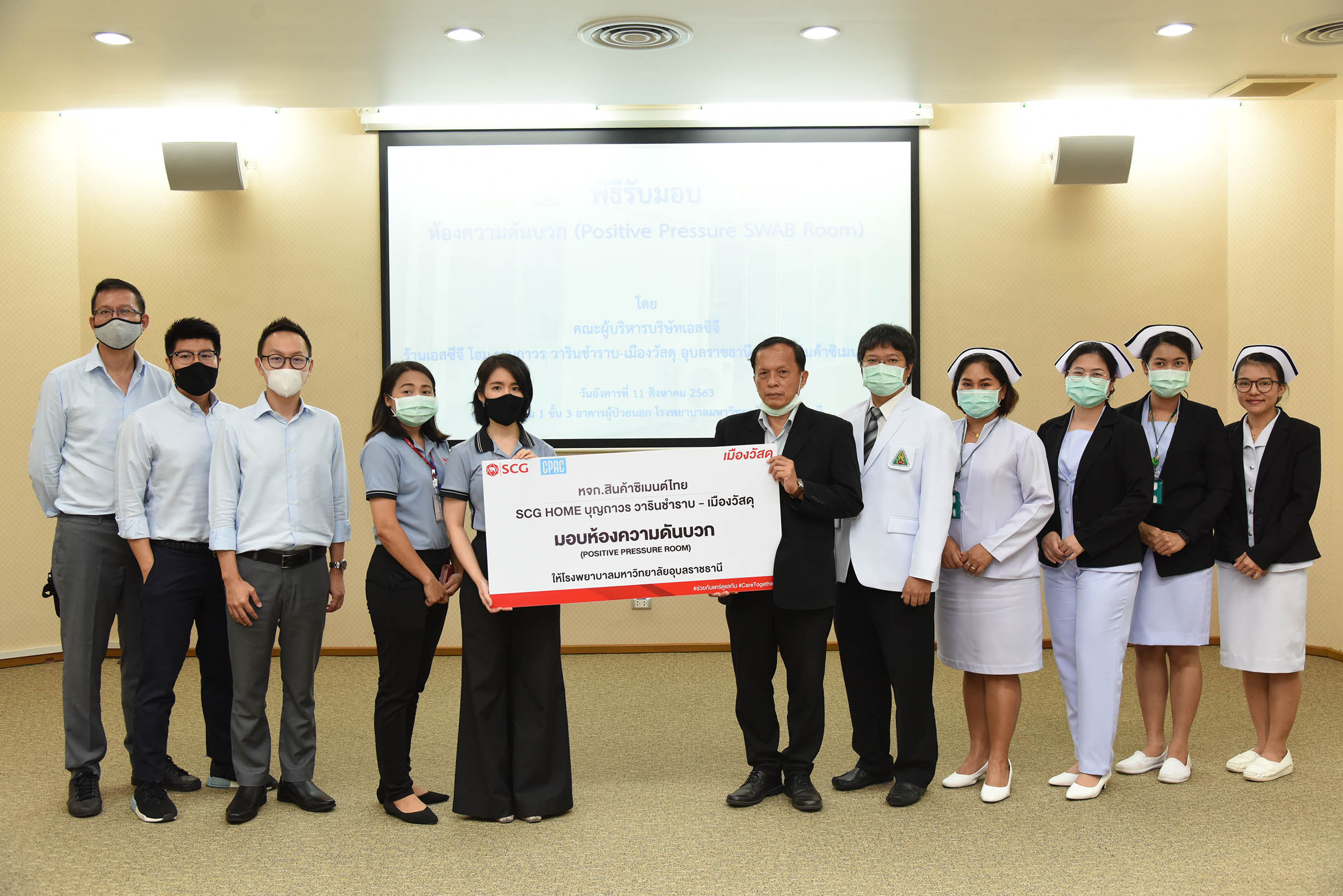 ห้างหุ้นส่วนจำกัดสินค้าซิเมนต์ไทย (เมืองวัสดุ) มีความประสงค์ขอบริจาคห้องความดันบวกสำหรับบุคลากรทางการแพทย์เก็บตัวอย่างเชื้อ มูลค่า 100,000 บาท ให้กับโรงพยาบาลมหาวิทยาลัยอุบลราชธานี เพื่อใช้ในประโยชน์ทางการแพทย์เพื่อความปลอดภัยในการปฏิบัติงานของบุคลากร วันที่ 11 สิงหาคม 2563 ณ อาคารผู้ป่วยนอก โรงพยาบาลมหาวิทยาลัยอุบลราชธานี (สามารถดาวน์โหลดภาพทั้งหมดได้ที่คลังภาพ goo.gl/gIFJBd ) |