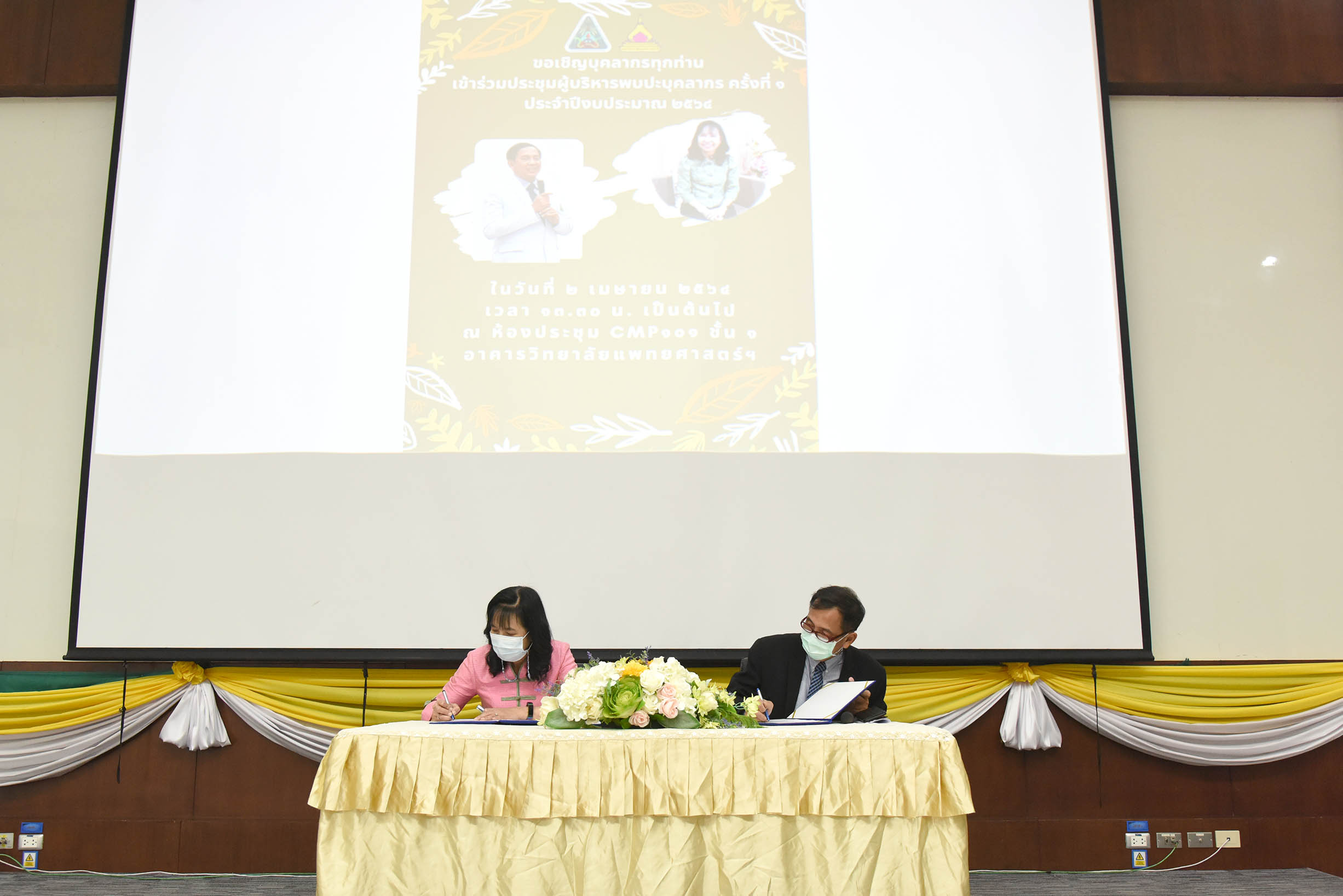 การรับส่งงานในหน้าที่ราชการตำแหน่งคณบดีวิทยาลัยแพทยศาสตร์และการสาธารณสุข วันที่ 2 เมษายน 2564 ณ ห้องประชุม CMP 101 วิทยาลัยแพทยศาสตร์และการสาธารณสุข มหาวิทยาลัยอุบลราชธานี