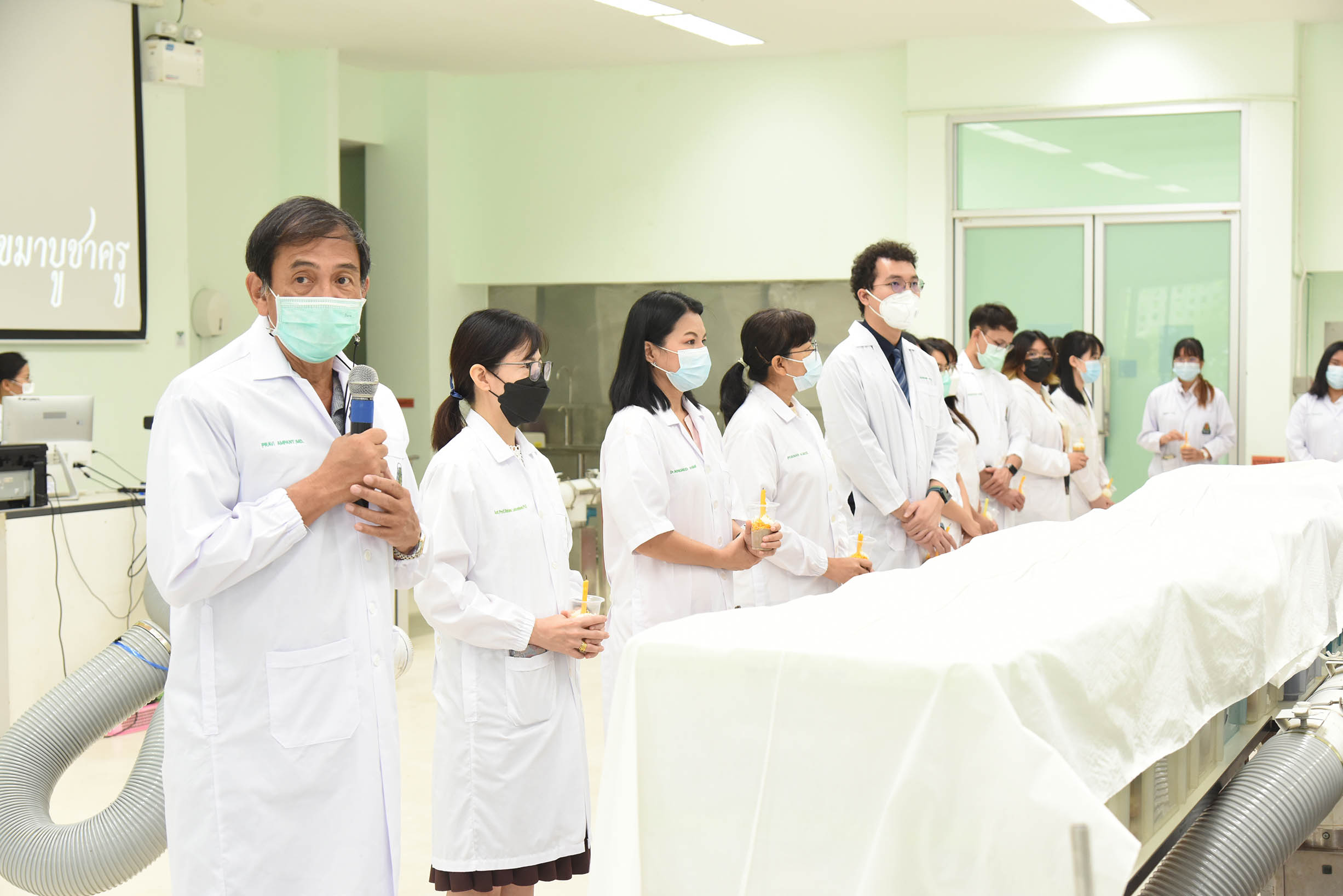 งานทำบุญอุทิศส่วนกุศลแด่อาจารย์ใหญ่และพิธีไหว้ขอขมาอาจารย์ใหญ่ ประจำปี 2565 วันที่ 21 พฤษภาคม 2565 ณ อาคารสมจิตต์ ยอดเศรณี วิทยาลัยแพทยศาสตร์และการสาธารณสุข มหาวิทยาลัยอุบลราชธานี